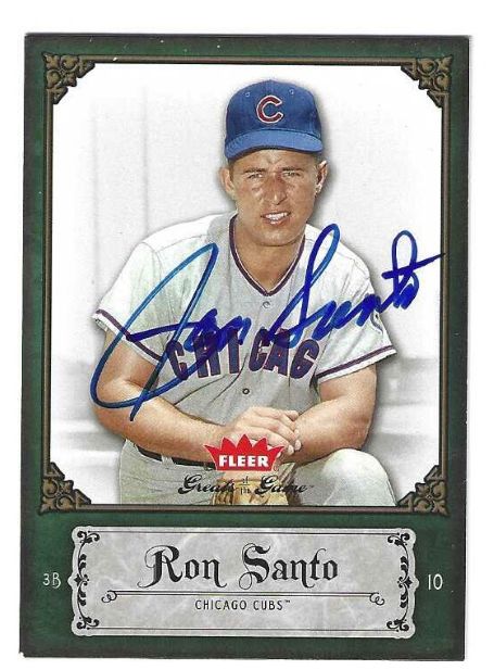 Autographed RON SANTO Chicago Cubs 2006 FLEER GREATS of the GAME CARD