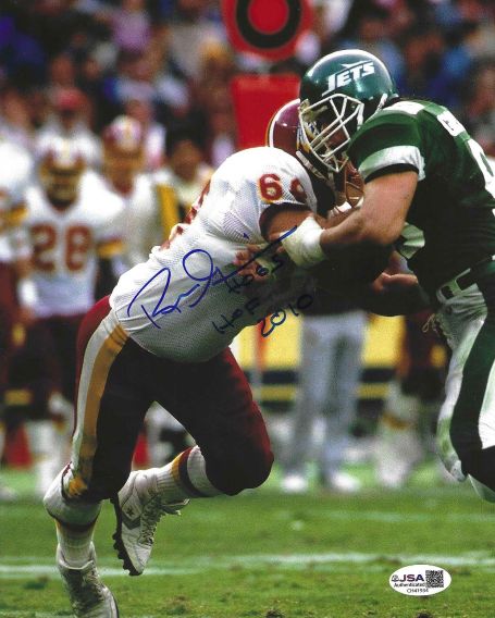 AUTOGRAPHED Russ Grimm 8X10 Washington Redskins photo. Signed in sharpie. JSA COA.
