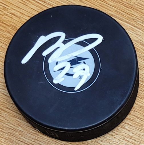 Autographed RYAN MCDONAGH Tampa Bay Lightning Hockey Puck. Signed in blue sharpie.