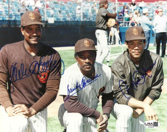 AUTOGRAPHED SANDY JR, SANDY SR, ROBERTO ALOMAR 8X10 San Diego Padres photo JSA