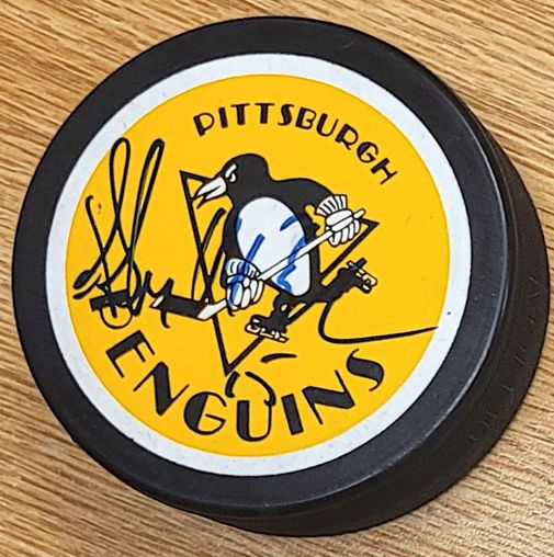 Autographed SHAWN MCEACHERN Pittsburgh Penguins Hockey Puck. Signed in sharpie.