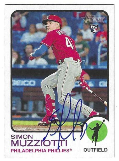 Autographed SIMON MUZZIOTTI Philadelphia Phillies 2022 Topps Heritage Card #679 quantity