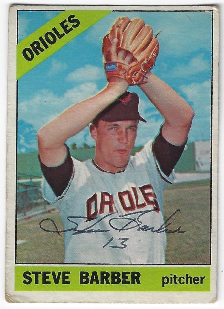 Autographed STEVE BARBER Baltimore Orioles 1966 Topps Card