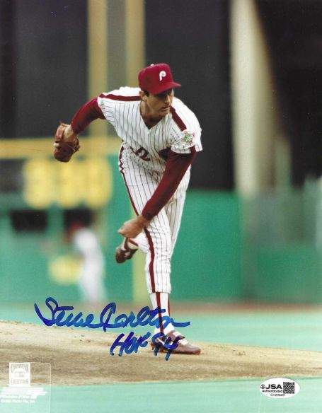Autographed 8X10 photo of Baseball Hall of Famer STEVE CARLTON of the PHILADELPHIA PHILLIES. JSA COA