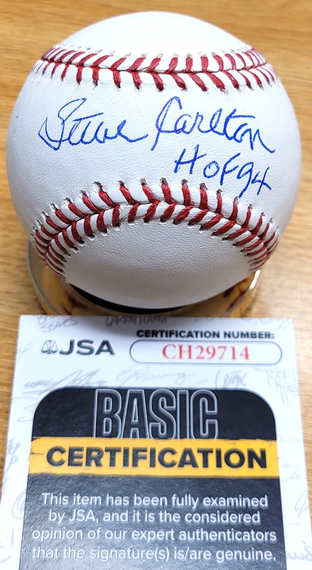 Official Rawlings Major League Baseball autographed by Hall of Famer STEVE CARLTON. Ball is signed in blue ball point pen. JSA COA.