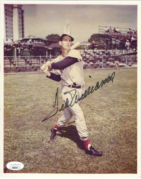 Autographed 8X10 photo of Baseball Hall of Famer TED WILLIAMS of the Boston Red Sox. JSA Full letter COA.