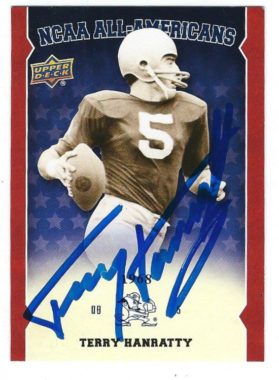 Autographed TERRY HANRATTY 2013 Upper Deck Notre Dame Card.