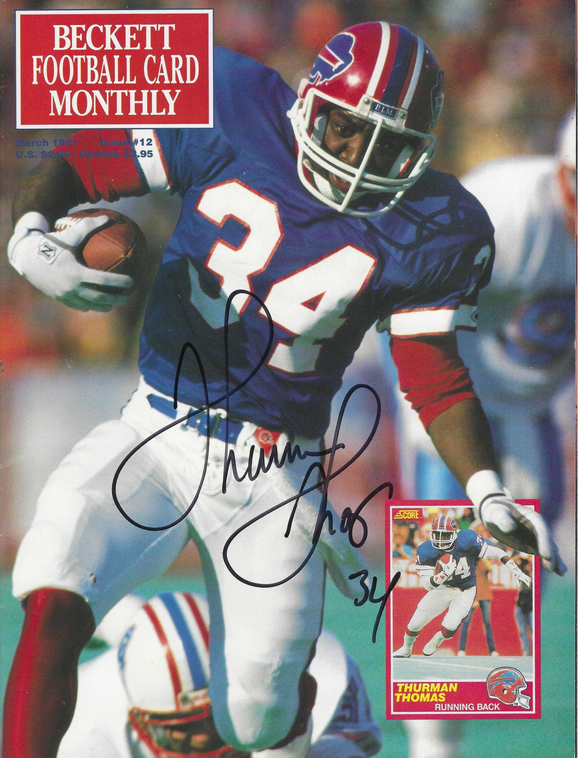 Autographed THURMAN THOMAS Buffalo Bills Beckett Football Card Monthly March 1991 Signed in blue sharpie.