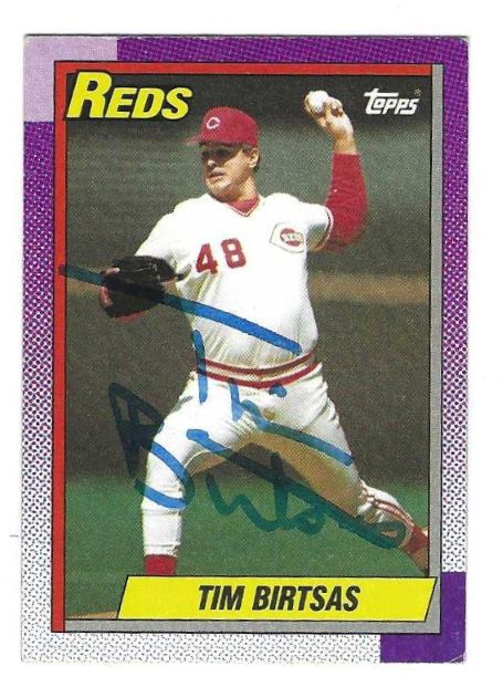 Autographed TIM BIRTSAS 1990 Topps card #687 . Card is signed in blue sharpie.