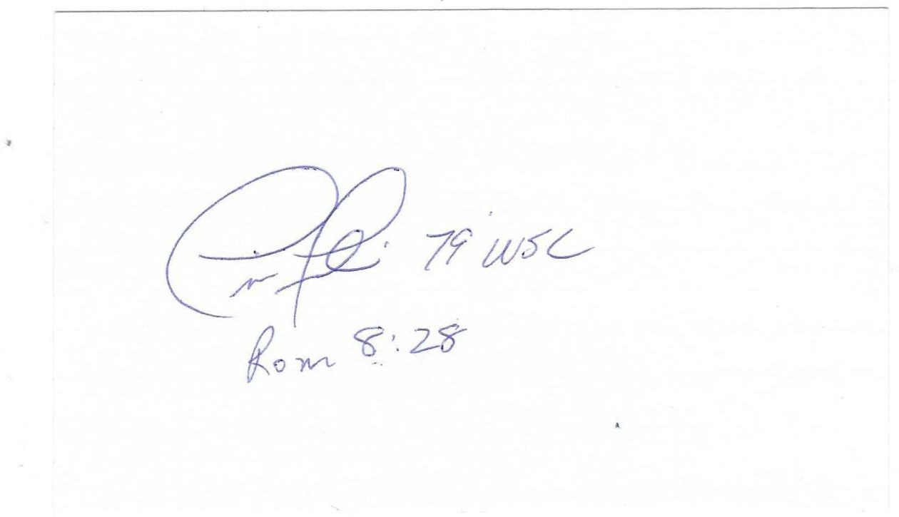 Here is an AWESOME item for Baseball fans and collectors! It’s a 3″ x 5″ index card  Signed by Pirates Shortstop Tim Foli with 79 WSC inscription.
