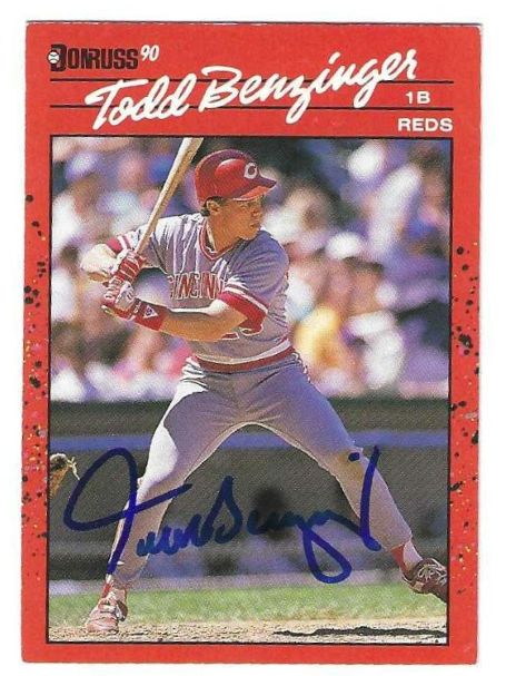 Autographed TODD BENZINGER 1990 Donruss card #257 . Card is signed in blue sharpie.