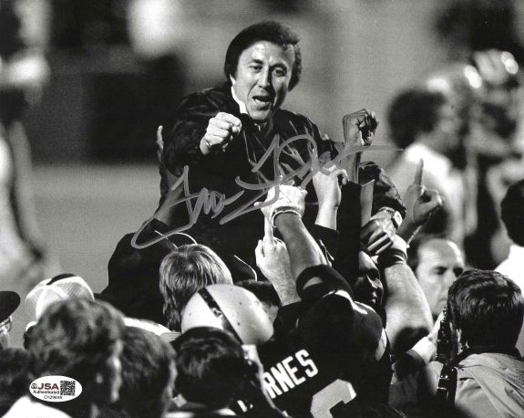 Autographed TOM FLORES 8X10 Oakland Raiders photo. Signed in sharpie. JSA COA.