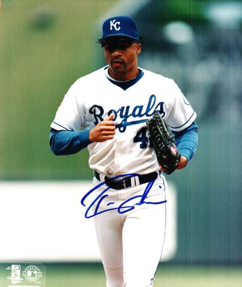 Here is an UNIQUE item for Kansas City Royals baseball fans and collectors! It’s an autographed 8″ x 10″ glossy photo of TOM GOODWIN and its signed in sharpie.