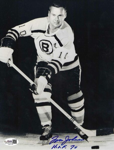 Here is an UNIQUE item for Boston Bruins and NHL Hockey fans and collectors! It’s an autographed 8″ x 10″ glossy photo of TOM JOHNSON. Mr. Johnson is a honored member of the Hockey Hall of Fame. JSA COA.