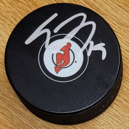 Autographed TRAVIS ZAJAC New Jersey Devils Hockey Puck