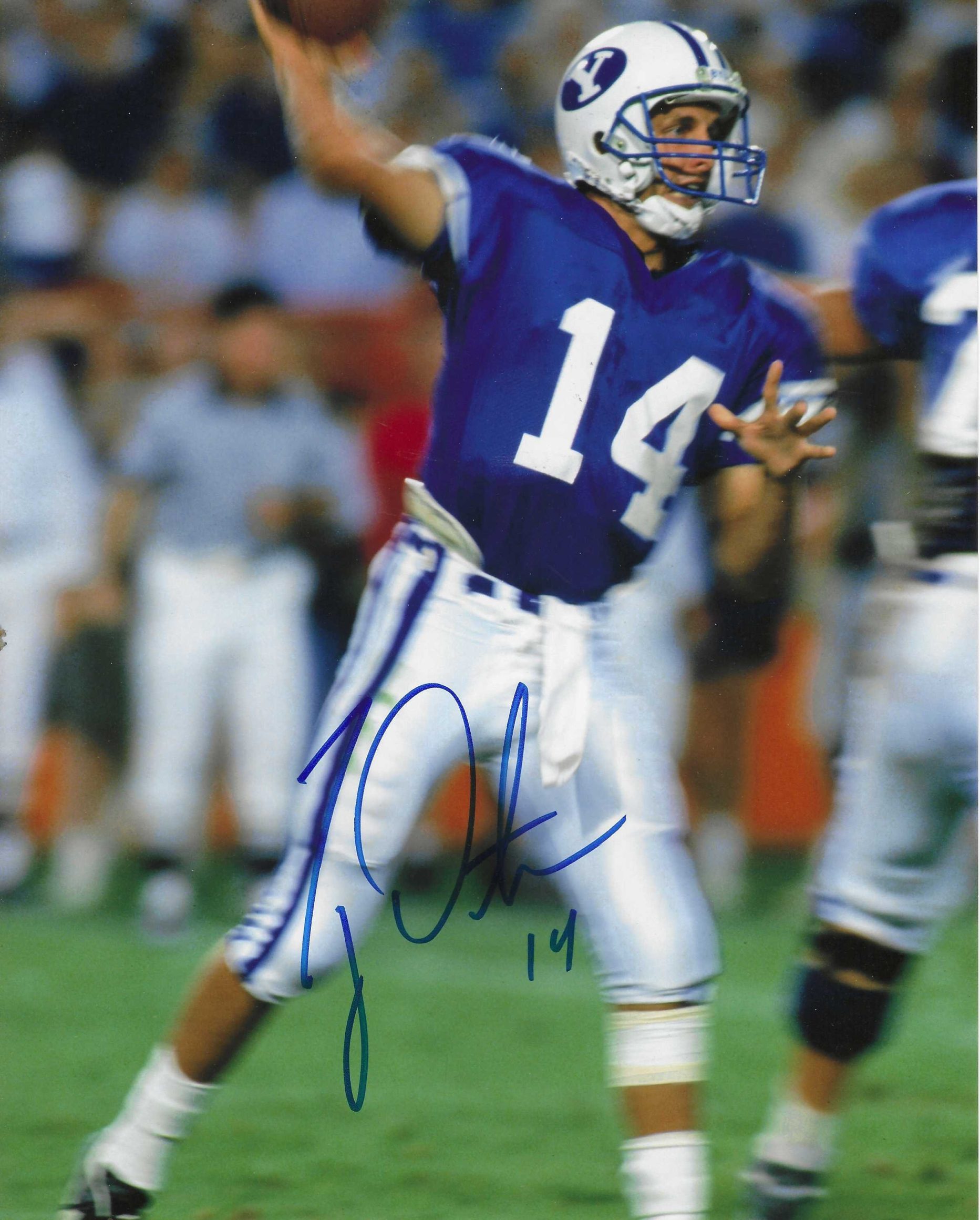 Autographed TY DETMER 8×10 photo – BYU COUGARS. Mr. Detmer won the Heisman Trophy in 1990.