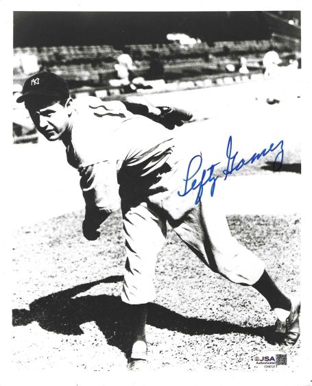 Autographed LEFTY GOMEZ 8X10 BXW photo.. Signed in Blue sharpie. Mr. Gomez is a honored member of the Baseball Hall of Fame. JSA COA.