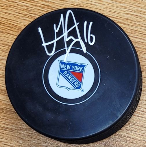 Autographed VINCENT TROCHECK New York Rangers Hockey Puck. Signed in Silver sharpie.