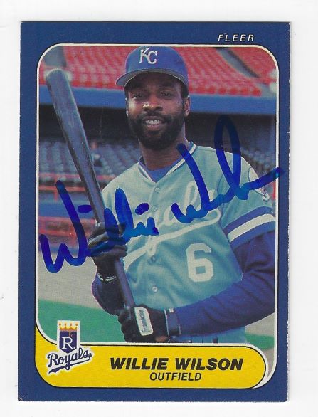 Autographed WILLIE WILSON Kansas City Royals 1986 Fleer Card