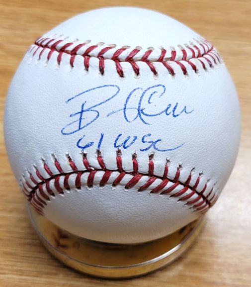 Official Rawlings Major League Baseball autographed by Bob Cerv . Ball is signed in blue ball point pen.