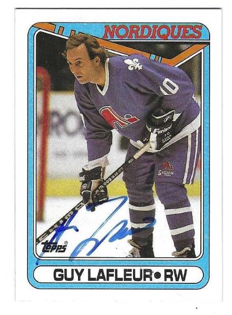GUY LAFLEUR Quebec Nordiques Autographed 1990-91 Topps Card