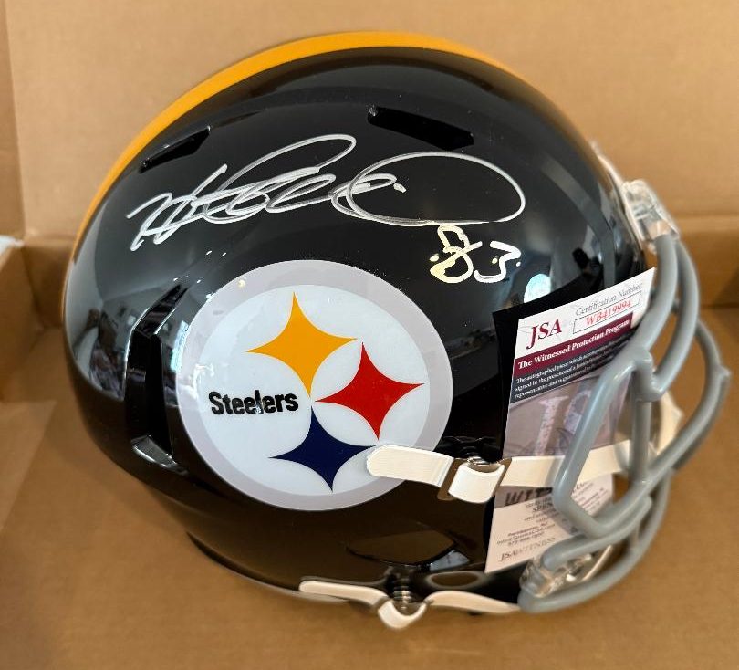 HEATH MILLER Pittsburgh Steelers Full-Size Replica Football Helmet . Signed in sharpie and includes Certificate of Authenticity from JSA