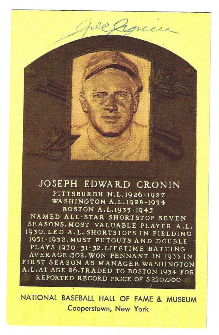 Autographed JOE CRONIN Hall of Fame Gold Plaque Postcard
