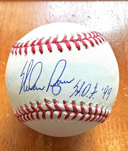Official Rawlings Major League Baseball autographed by NOLAN RYAN, HoF 99. Ball is signed in blue ball point pen. Comes with Nolan Ryan Foundation Hologram.