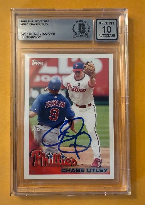 Signed Chase Utley Philadelphia Phillies 2010 Topps Card #PH18. Beckett Slabbed