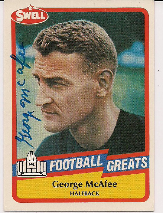 Autographed GEORGE MCAFEE – 1989 Swell Football Card, #75.