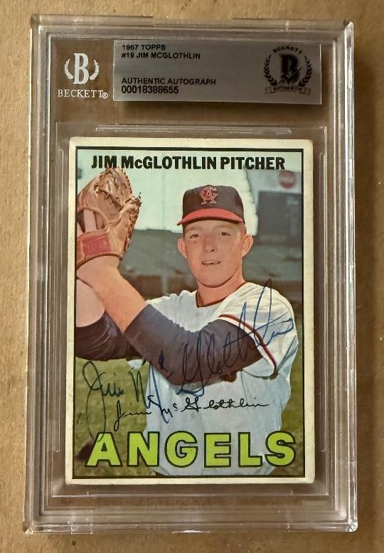Signed JIM McGLOTHLIN Angels 1967 Topps Card #19. Beckett Slabbed