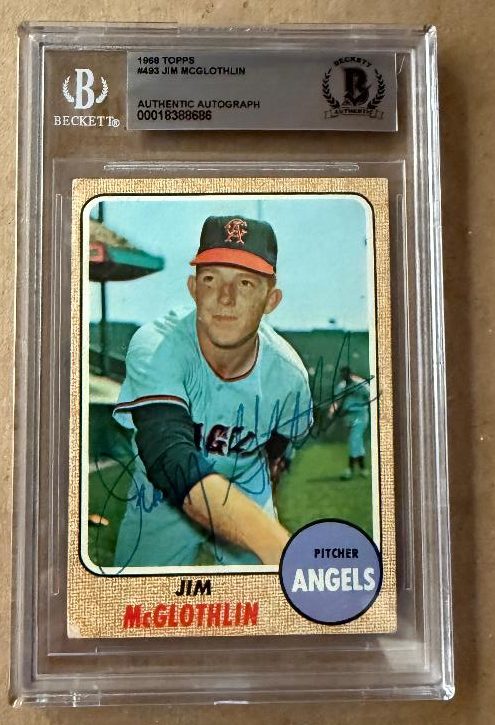Signed JIM McGLOTHLIN Angels 1968 Topps Card #493. Beckett Slabbed