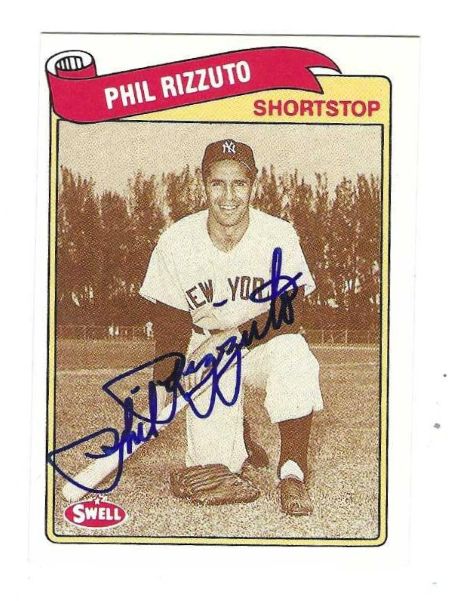 Signed PHIL RIZZUTO 1989 Swell card #111. Card is signed in sharpie.